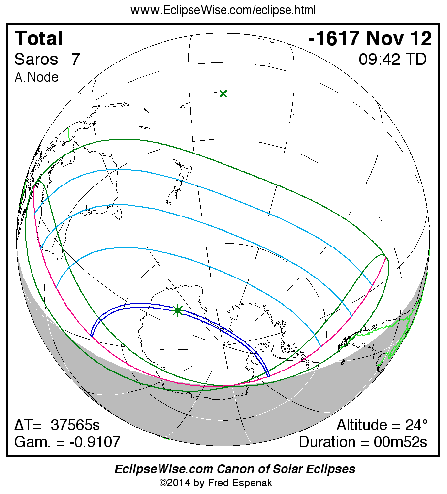Total Solar Eclipse of -1617 Nov 13 (1618 Nov 13 BCE)
