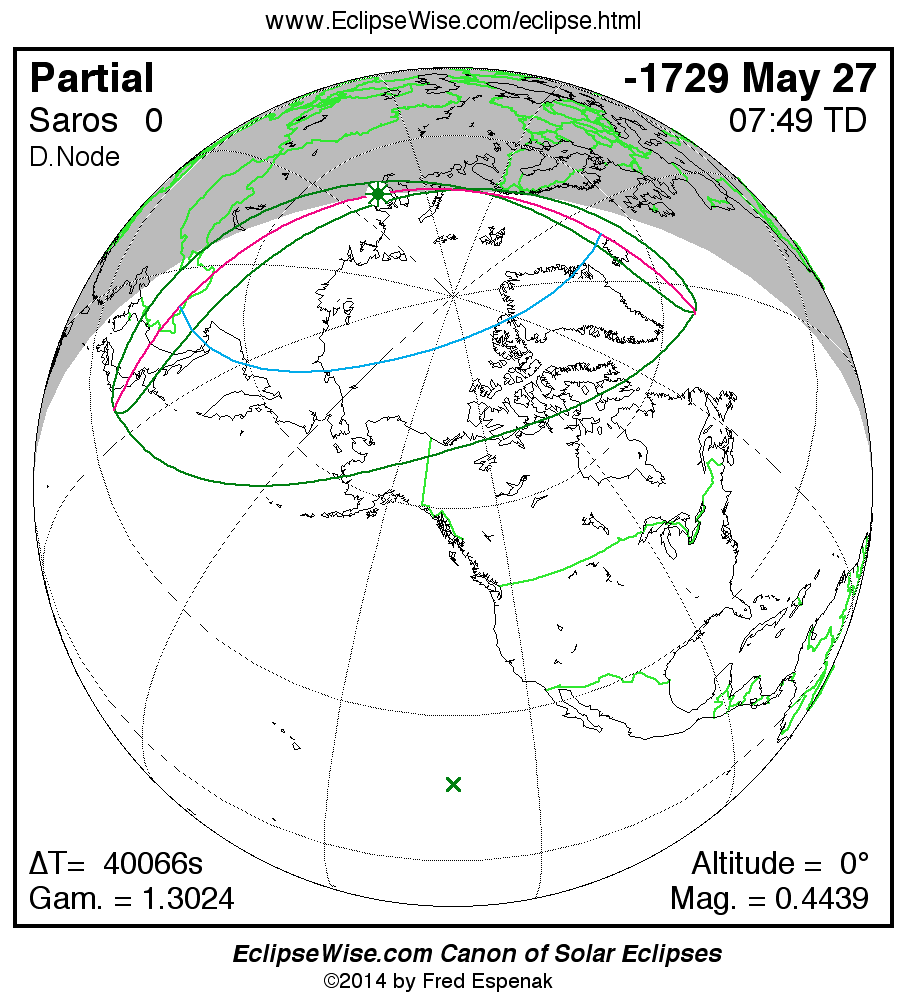 The instant of greatest eclipse takes place on -1729 May 28 at 07:49:05 TD (20:41:24 UT1).