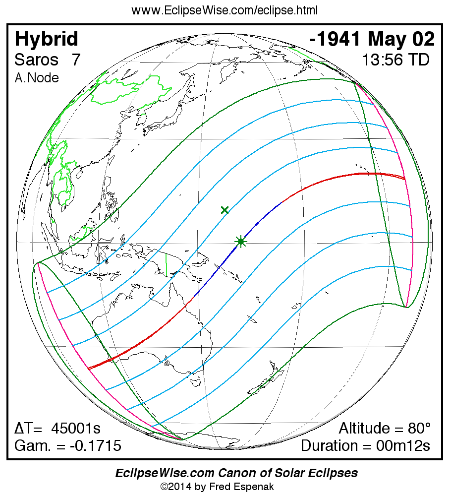 - Path Table: Hybrid Solar Eclipse of -1941 May 02 - coordinates of the central line and path limits