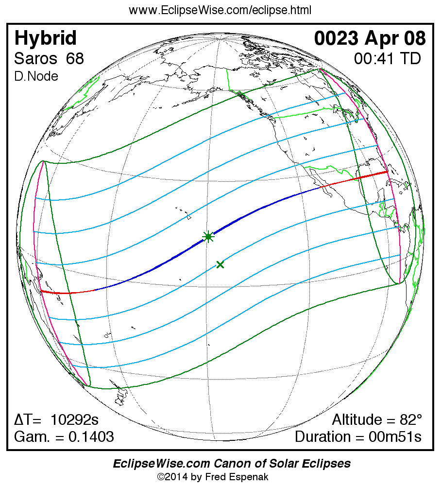 - Orthographic Map: Hybrid Solar Eclipse of 0023 Apr 09 - global map of eclipse visibility