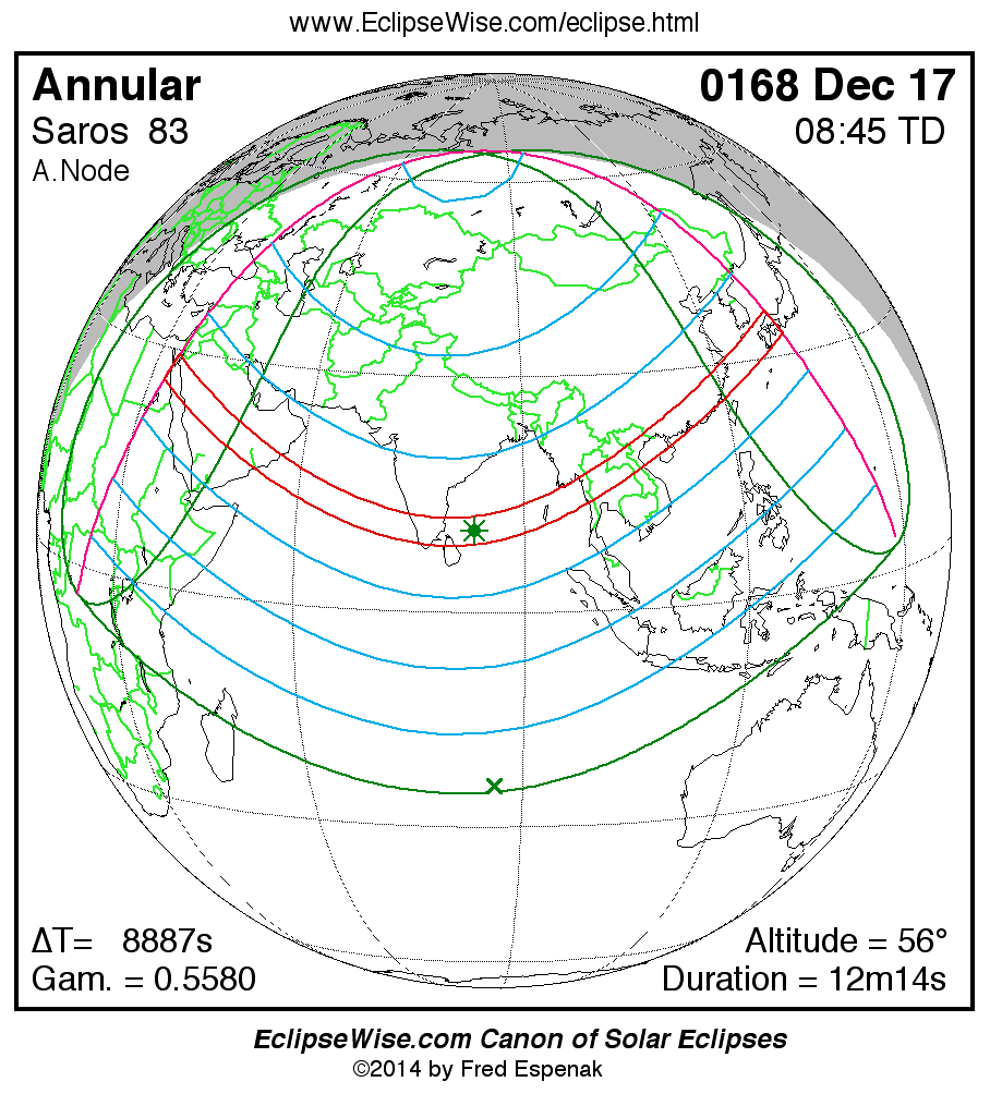 - Google Map: Annular Solar Eclipse of 0168 Dec 17 - interactive map of the eclipse path
