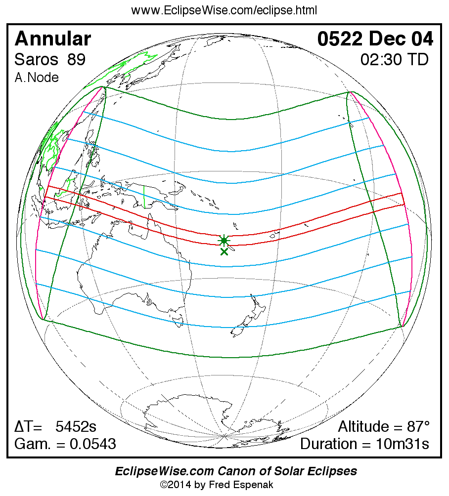 - Path Table: Annular Solar Eclipse of 0522 Dec 04 - coordinates of the central line and path limits