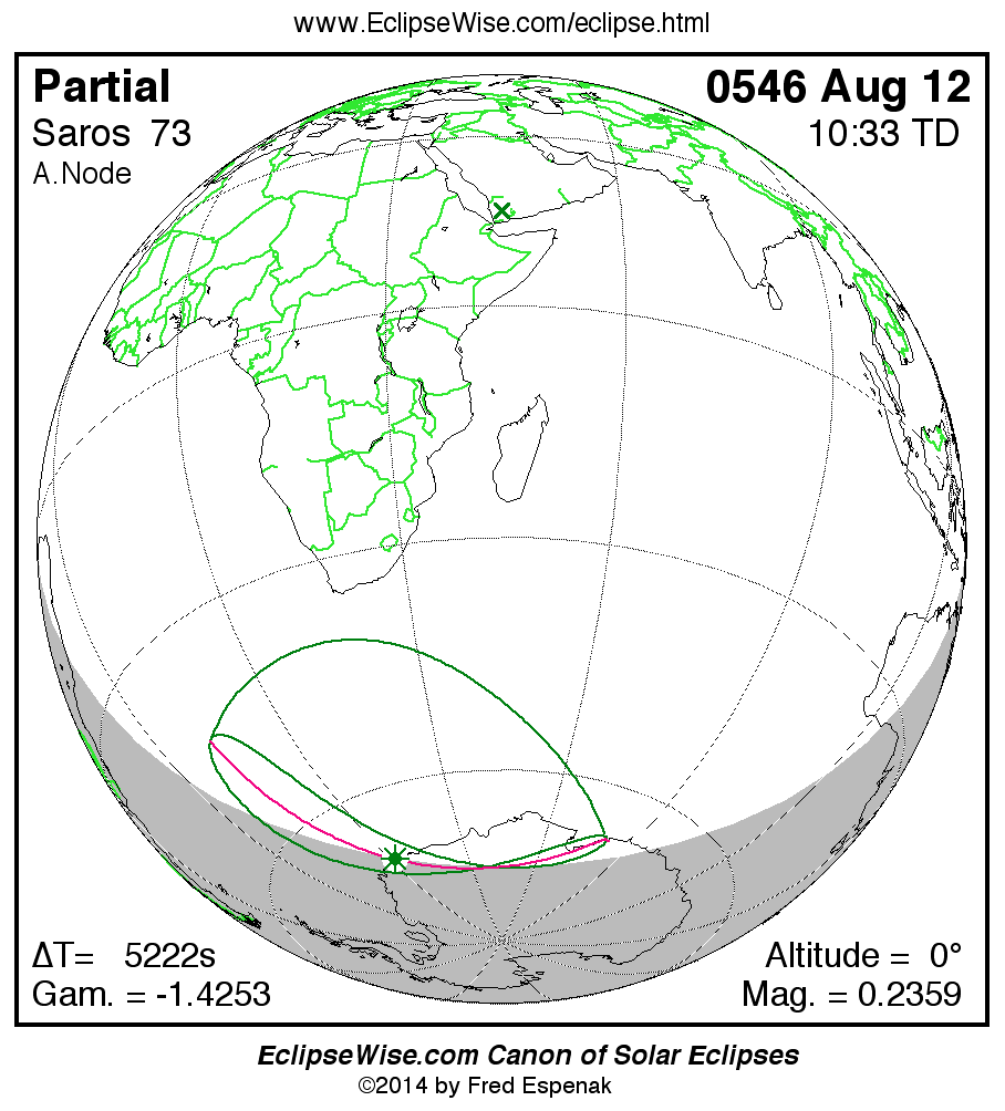Another solar eclipse occurs one synodic month after the 0546 Aug 12 eclipse. It is the partial solar eclipse of 0546 Sep 11.