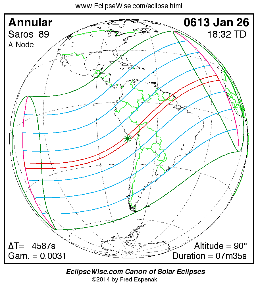 - Orthographic Map: Annular Solar Eclipse of 0613 Jan 26 - global map of eclipse visibility