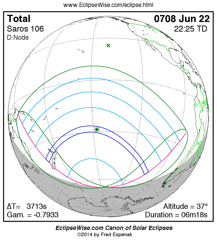 - Orthographic Map: Total Solar Eclipse of 0708 Jun 22 - global map of eclipse visibility