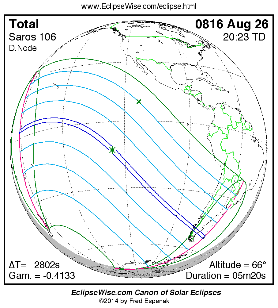 - Orthographic Map: Total Solar Eclipse of 0816 Aug 26 - global map of eclipse visibility