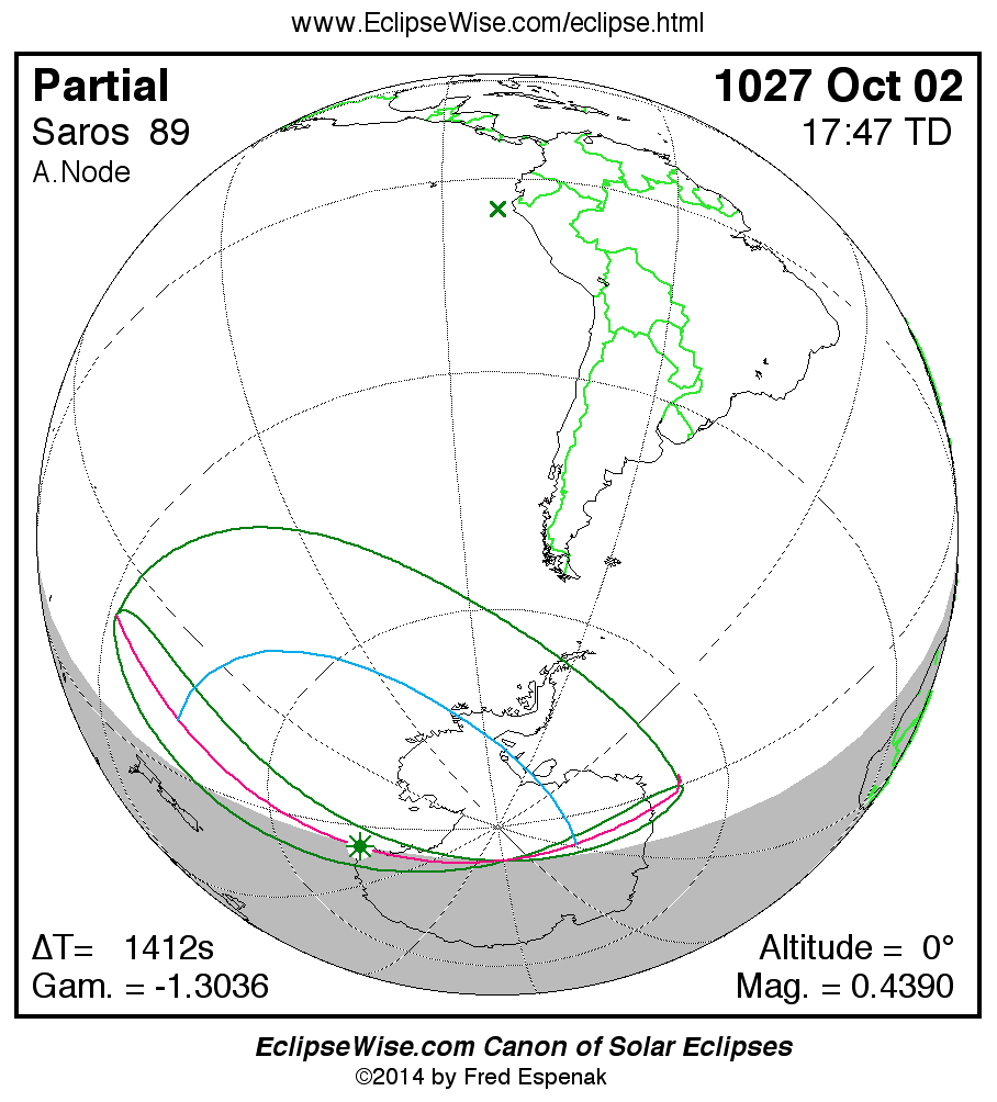 The instant of greatest eclipse takes place on 1027 Oct 02 at 17:46:37 TD (17:23:06 UT1).