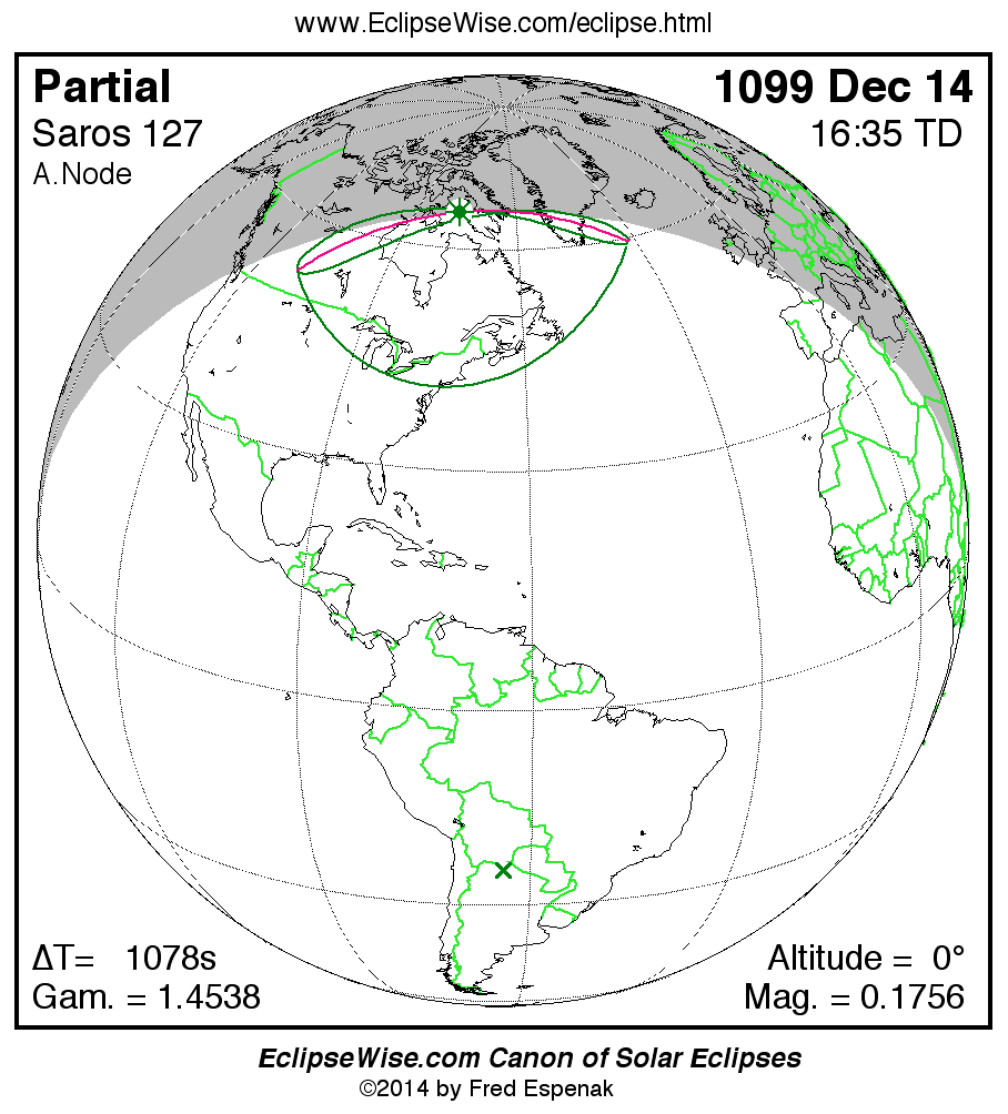 The instant of greatest eclipse takes place on 1099 Dec 14 at 16:34:59 TD (16:17:02 UT1).