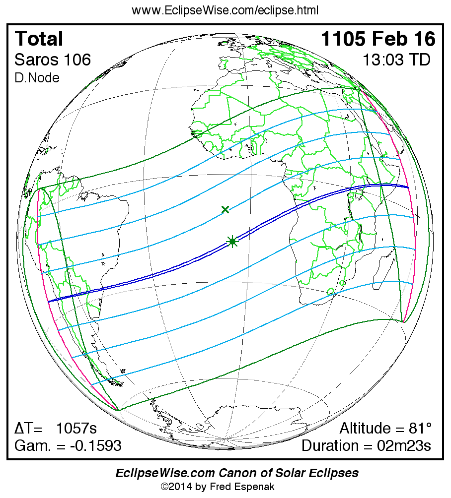 Total Solar Eclipse of 1105 Feb 16