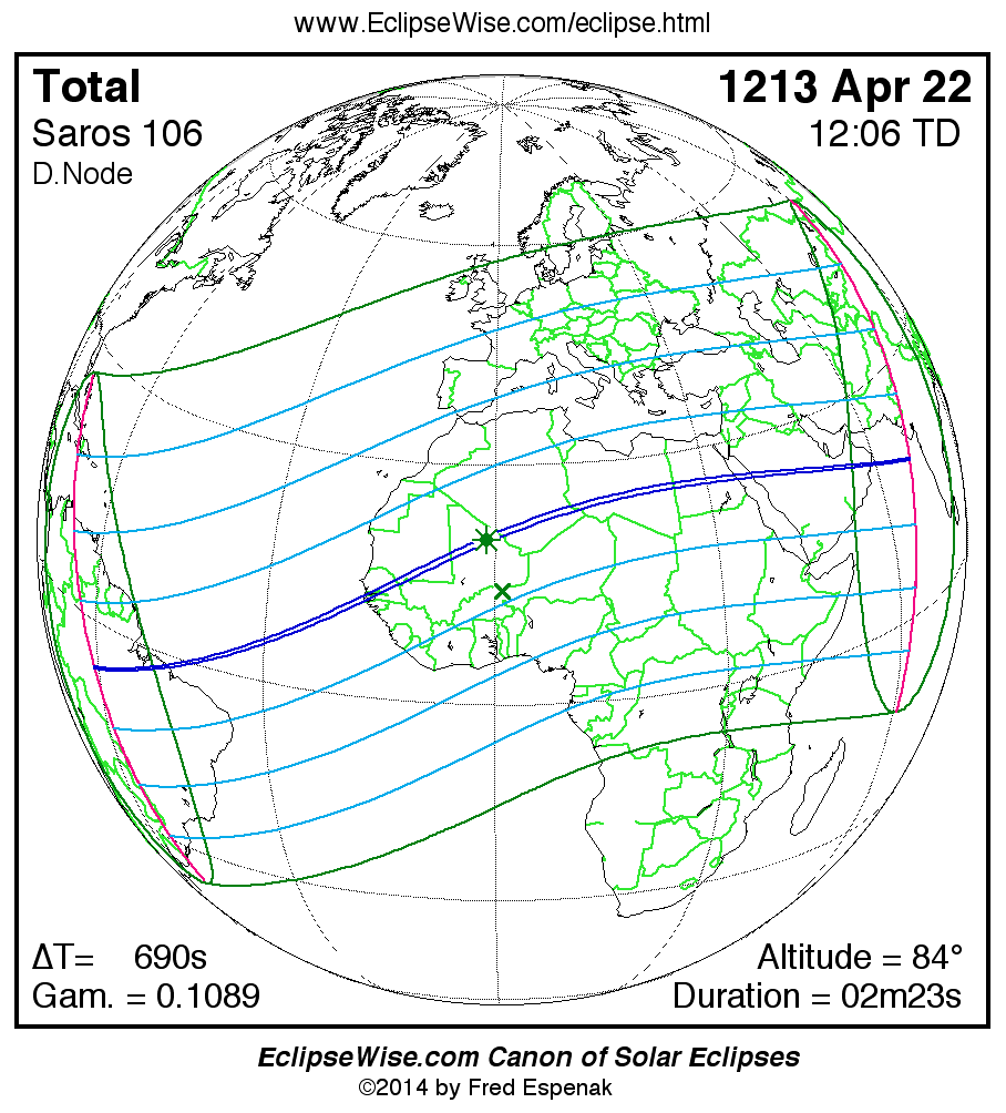 Total Solar Eclipse of 1213 Apr 22