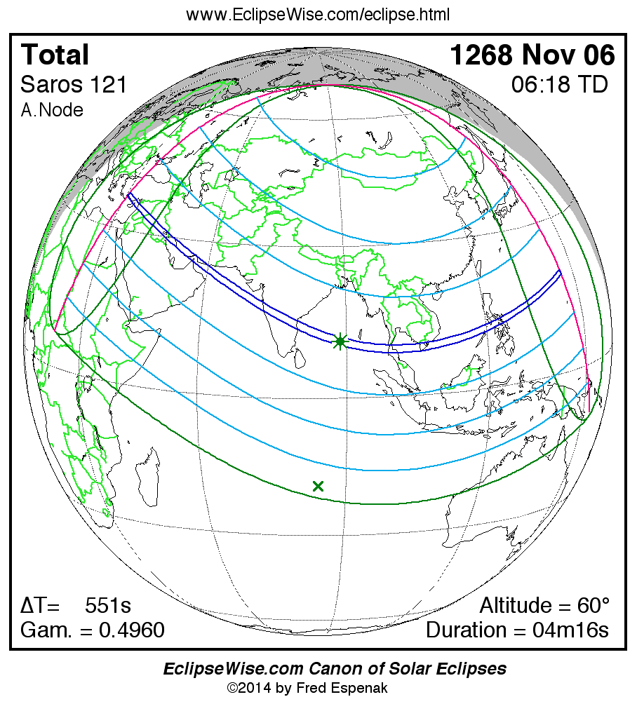 - Orthographic Map: Total Solar Eclipse of 1268 Nov 06 - global map of eclipse visibility