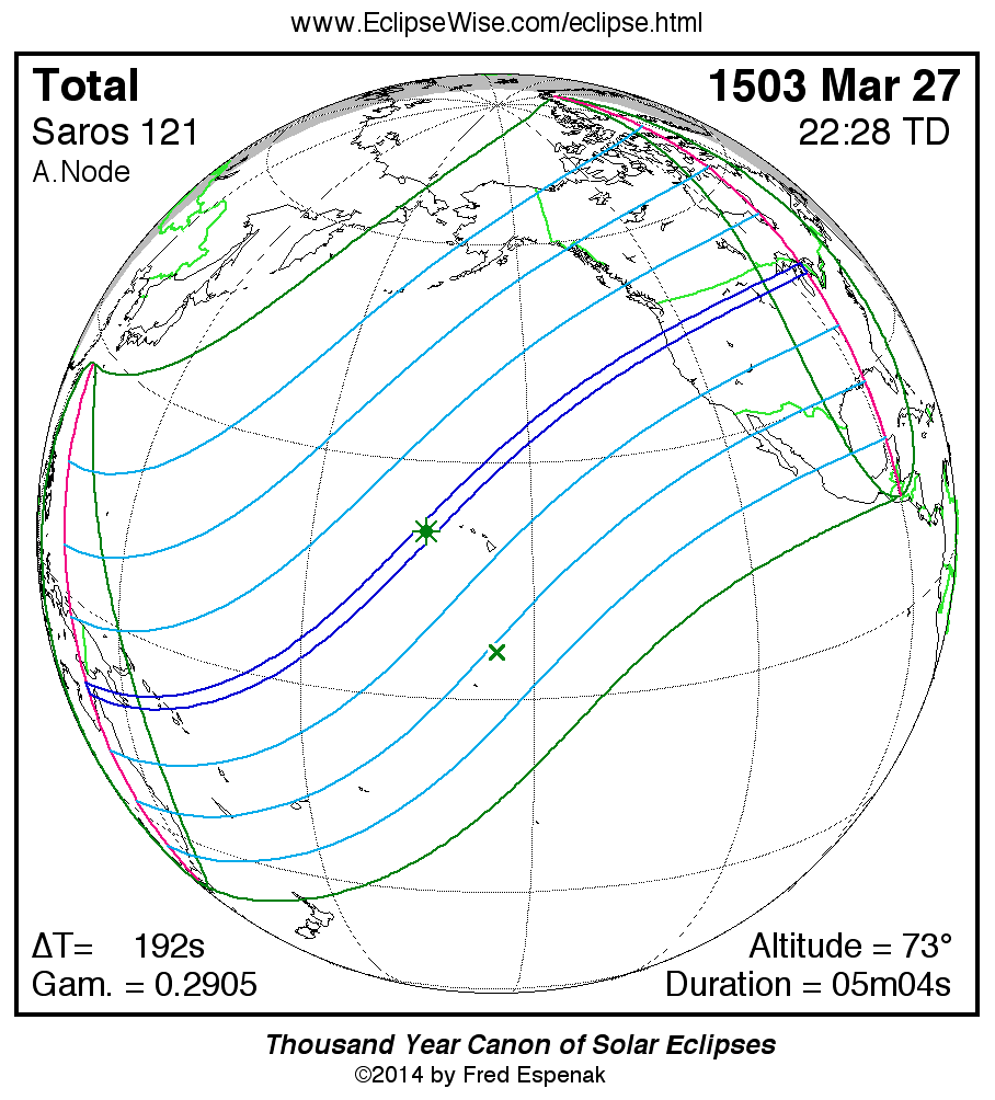 Total Solar Eclipse of 1503 Mar 27