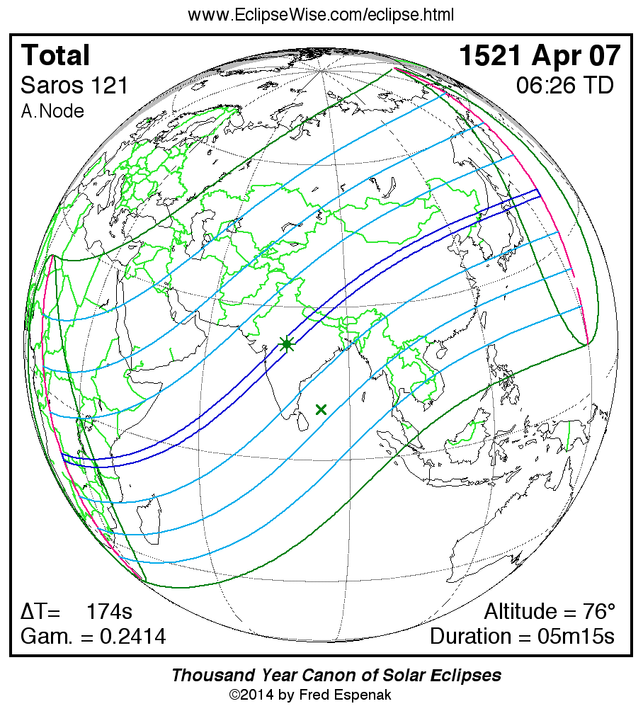 - Google Map: Total Solar Eclipse of 1521 Apr 07 - interactive map of the eclipse path