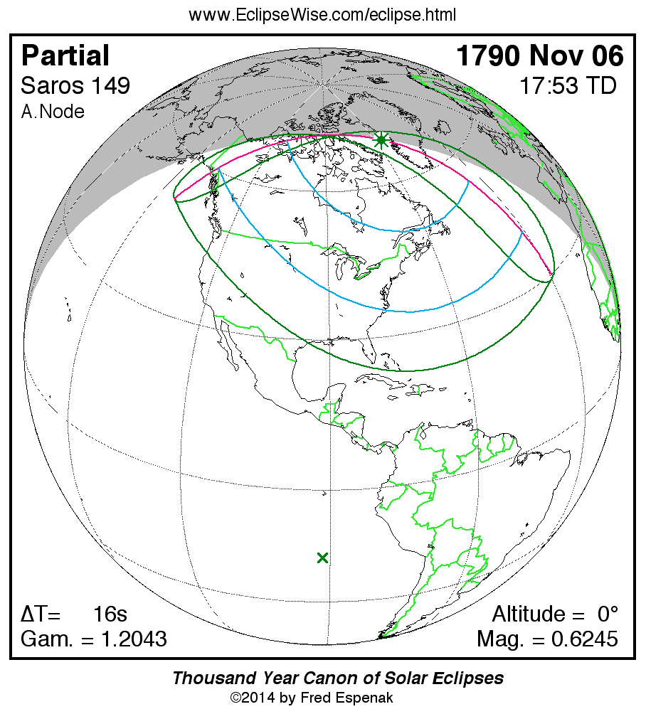 The partial solar eclipse of 1790 Nov 06 is preceded two weeks earlier by a total lunar eclipse on 1790 Oct 23.