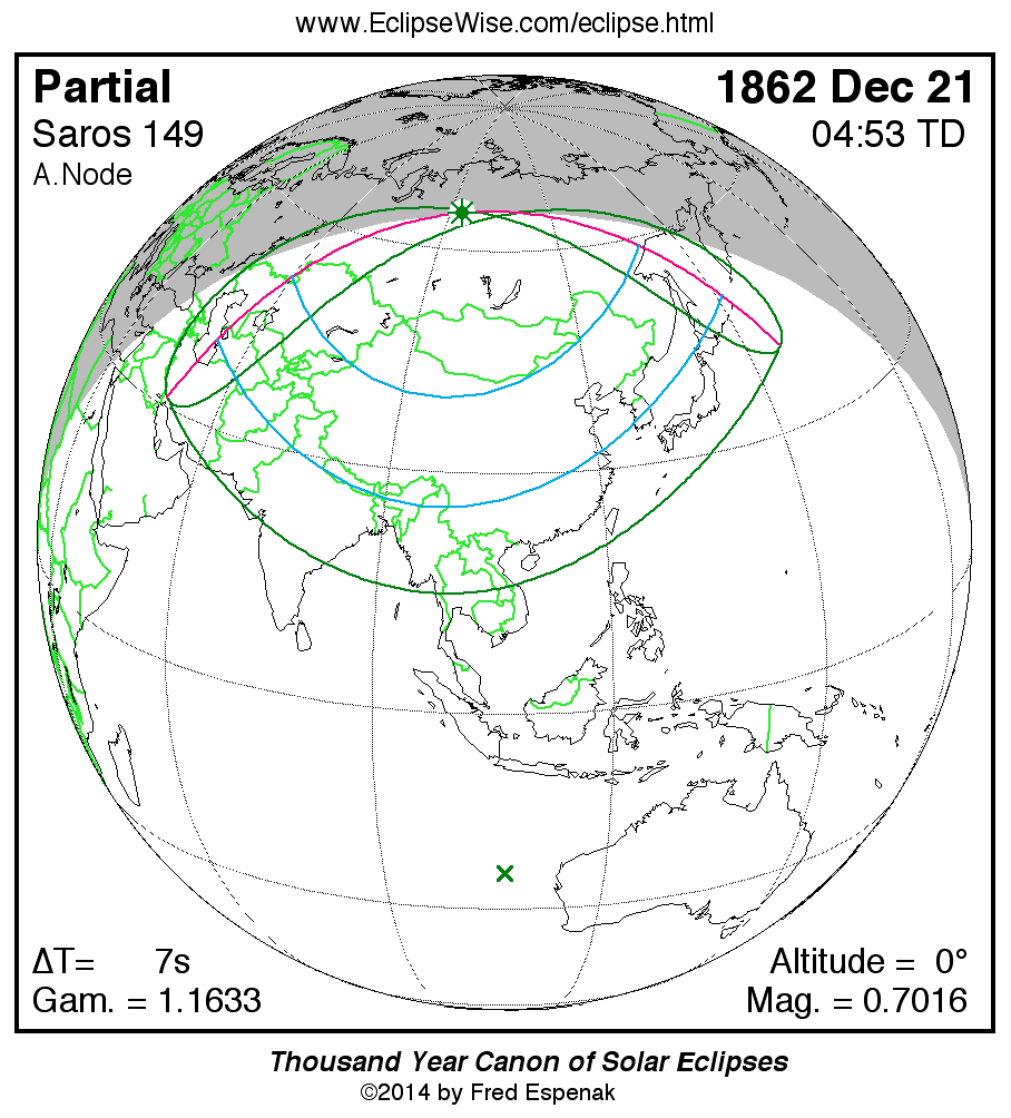 The instant of greatest eclipse takes place on 1862 Dec 21 at 04:53:02 TD (04:52:55 UT1).