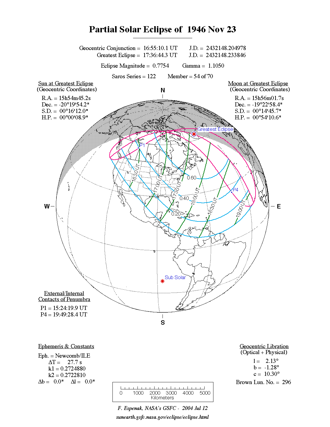 | Greatest Eclipse | 1946 Nov 23 at 17:37:12.3 TD (17:36:44.6 UT1) | 2432148.233850 |