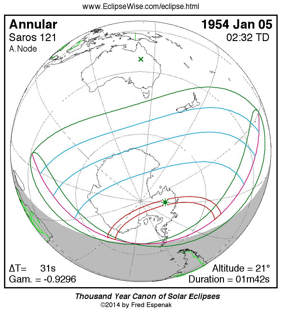Eclipse Data: Annular Solar Eclipse of 1954 Jan 05