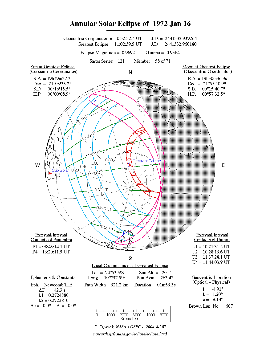 - Path Table: Annular Solar Eclipse of 1972 Jan 16 - coordinates of the central line and path limits