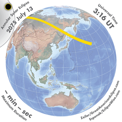 - Orthographic Map: Annular Solar Eclipse of 2075 Jul 13 - detailed global map of eclipse visibility (Key to Figure)