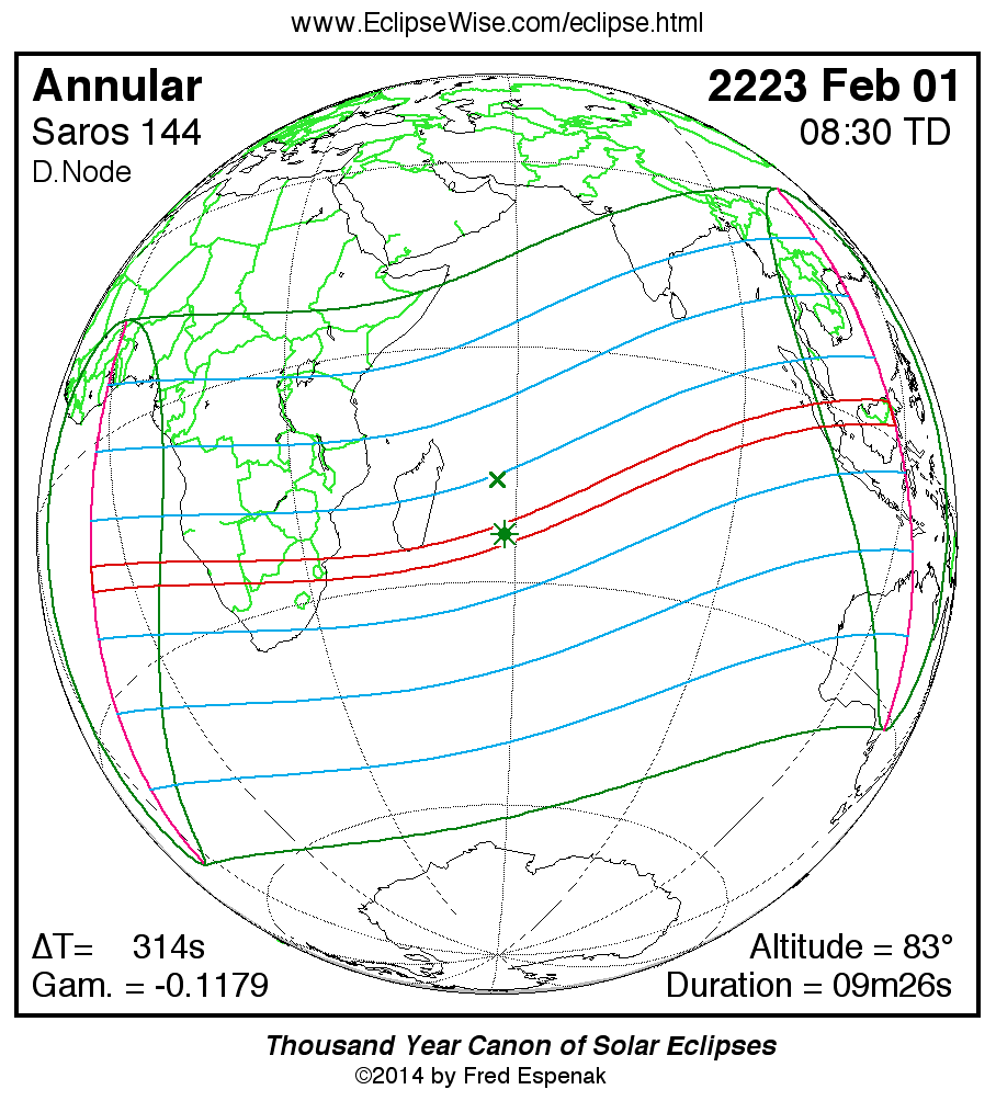 - Google Map: Annular Solar Eclipse of 2223 Feb 01 - interactive map of the eclipse path