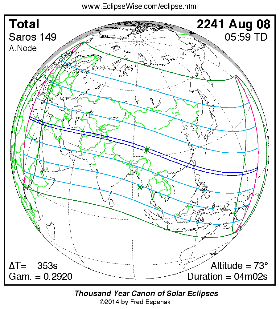 - Google Map: Total Solar Eclipse of 2241 Aug 08 - interactive map of the eclipse path