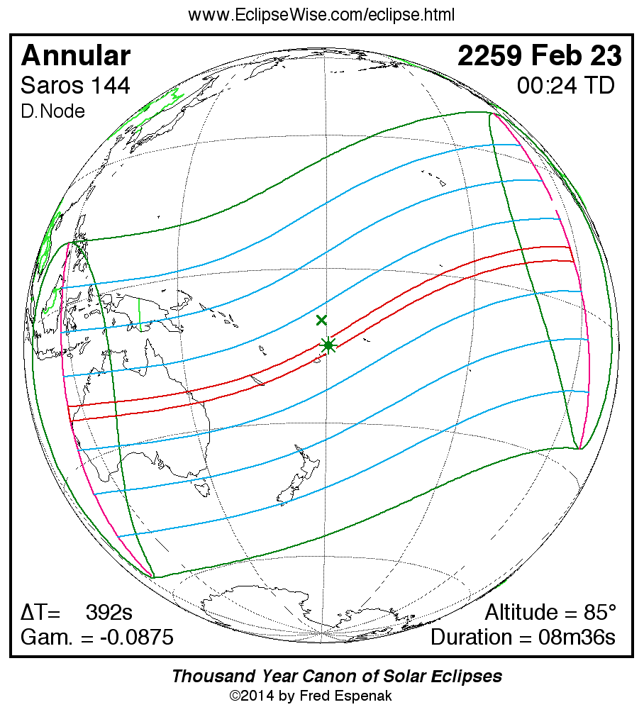 - Google Map: Annular Solar Eclipse of 2259 Feb 23 - interactive map of the eclipse path