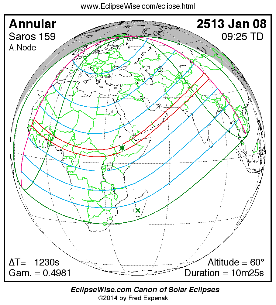 - Google Map: Annular Solar Eclipse of 2513 Jan 08 - interactive map of the eclipse path