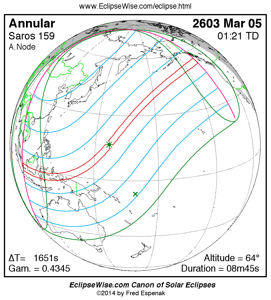 - Google Map: Annular Solar Eclipse of 2603 Mar 05 - interactive map of the eclipse path
