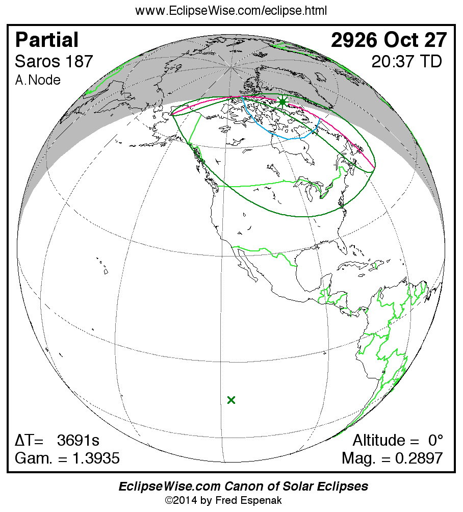 Greatest Eclipse 2926 Oct 27 at 20:36:51.7 TD (19:35:21.4 UT1) 2790059.316220