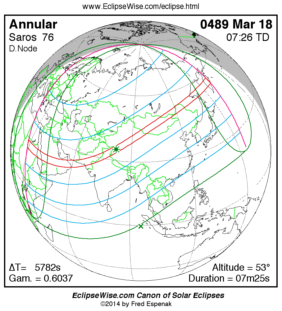 For more information on this series see Statistics for Solar Eclipses of Saros 76 .
