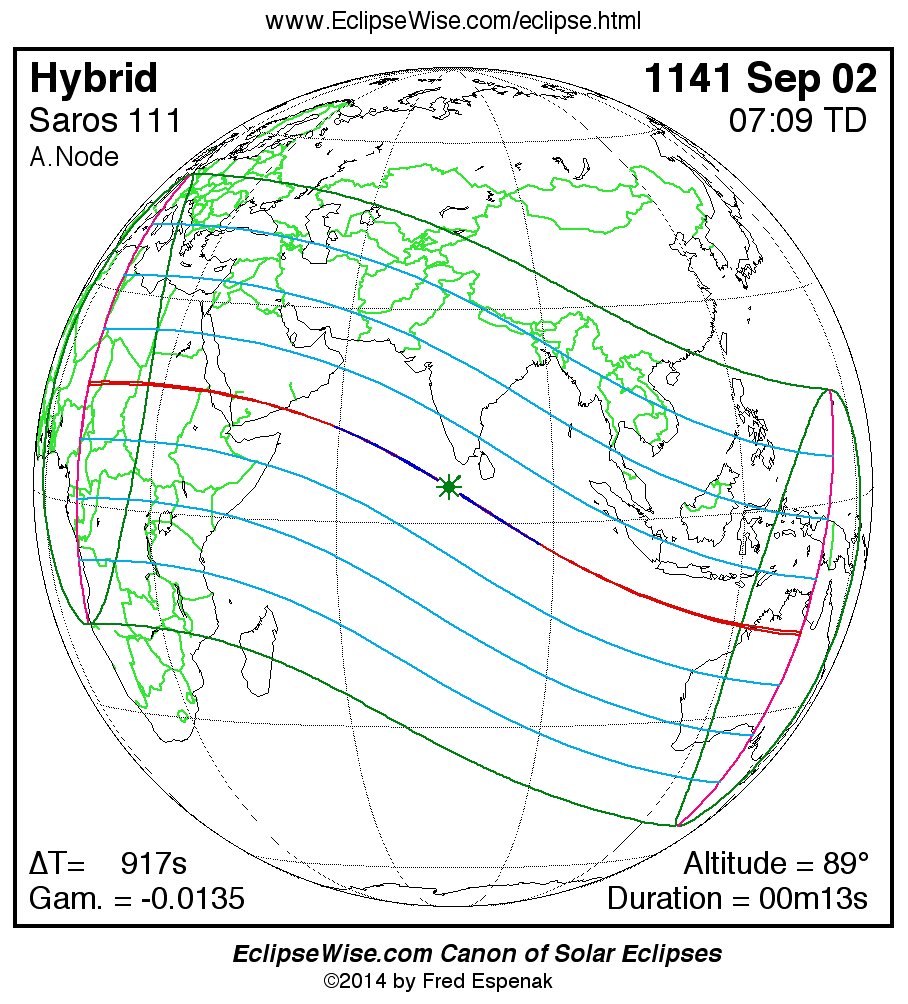 For more information on this series see Statistics for Solar Eclipses of Saros 111 .